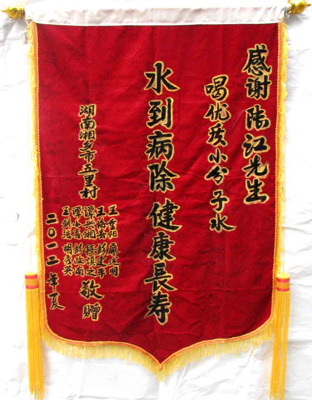 2015年潘志山主動(dòng)寫一篇感想《我以親身實(shí)踐打破了冠心病、高血壓、糖尿病需終生服藥的神話》說(shuō)堅(jiān)持按發(fā)明人陸?江先生倡導(dǎo)的用已饑方食的方法合理膳食,我的健康狀況越來(lái)越好:糖尿病造成的視力下降有了明顯的恢復(fù),末梢神經(jīng)炎導(dǎo)致的指端潰爛現(xiàn)在完全痊愈,痔瘡自從飲用微小分子團(tuán)水半年后就再也沒有復(fù)發(fā)過(guò),氣滯血瘀造成的嘴唇暗紫也漸漸變得紅潤(rùn),舌下靜脈黑紫消失,足背的動(dòng)脈由以前的隱約感到跳動(dòng)現(xiàn)在變得清晰有力。[13]潘先生披露的訣竅,一是飲用微小分子團(tuán)水給脫水細(xì)胞補(bǔ)水,二是已饑方食”養(yǎng)生智慧,患者都能做到。